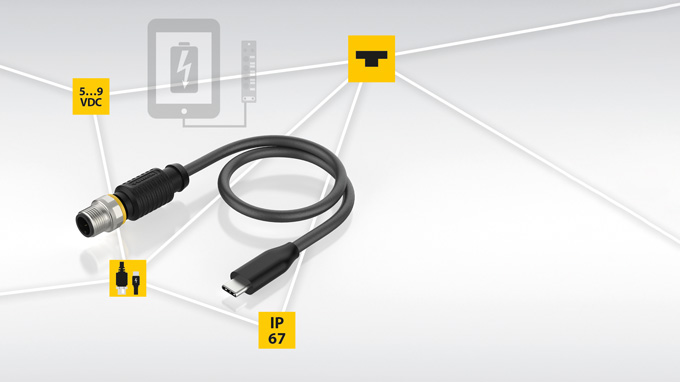 Töltse fel mobil eszközeit közvetlenül M12-es aljzaton keresztül: a TURCK M12-USB töltőkábelével ez lehetséges.